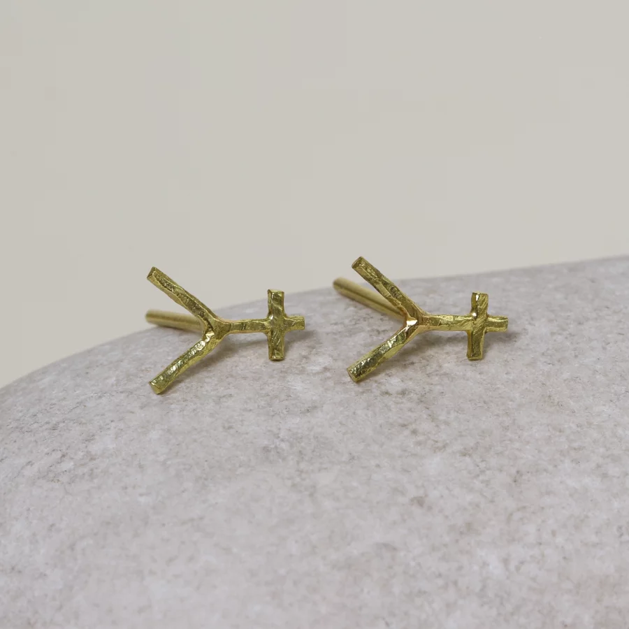 Unique earrings inspired by the symbol ofย Hephaestus. Hephaestus is the god of fire, smiths, craftsmen, sculpture, stonemasonry and metalworking. ย He is married to Aphrodite the goddess of love.