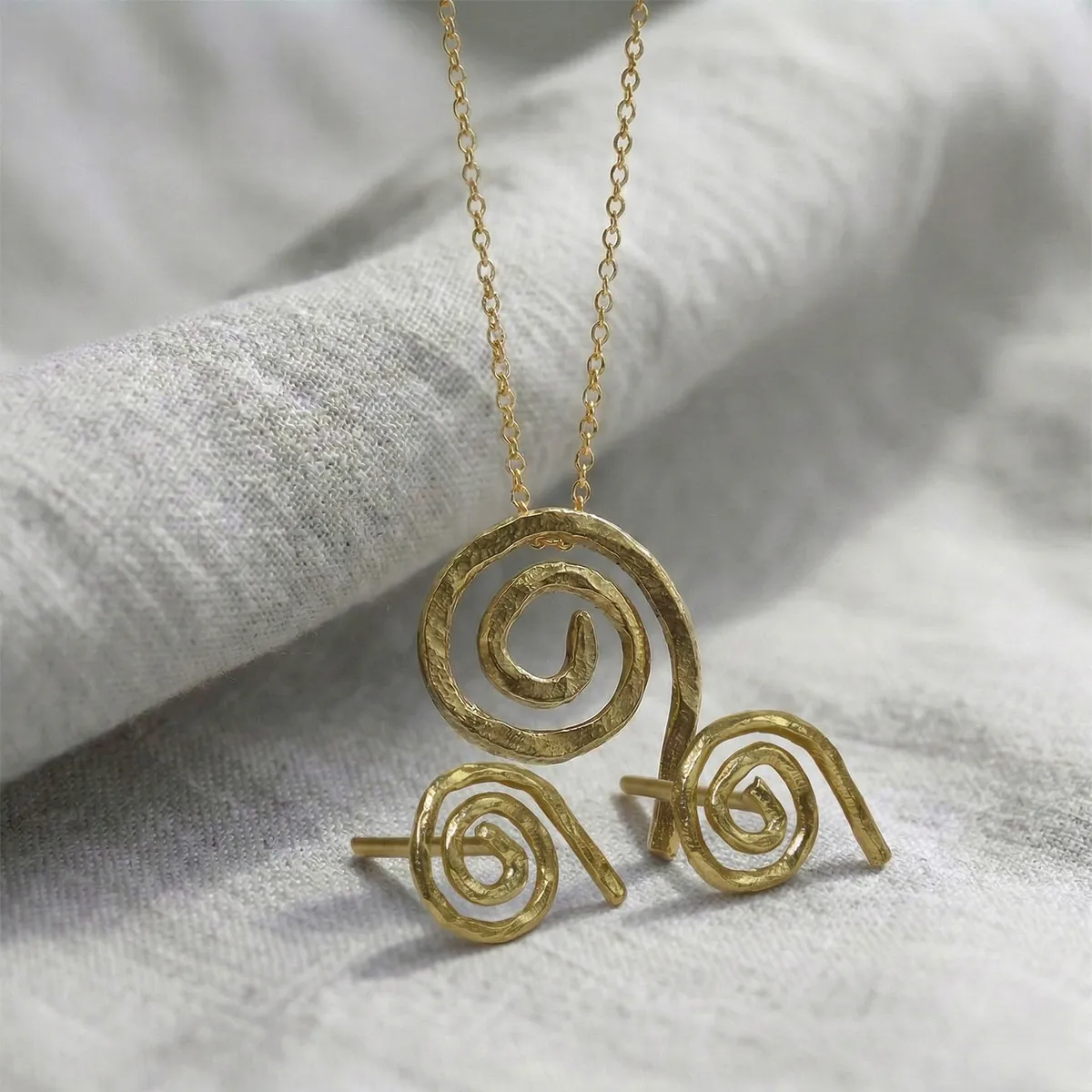 A solid 950 platinum pendant and earrings set inspired by the Celtic single spiral symbol that is that is thought to signify growth, birth, expansion of consciousness, perseverance, and knowledge; a great symbol for those wanting to move forward.