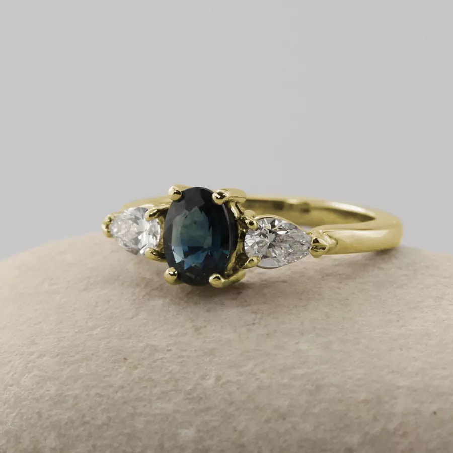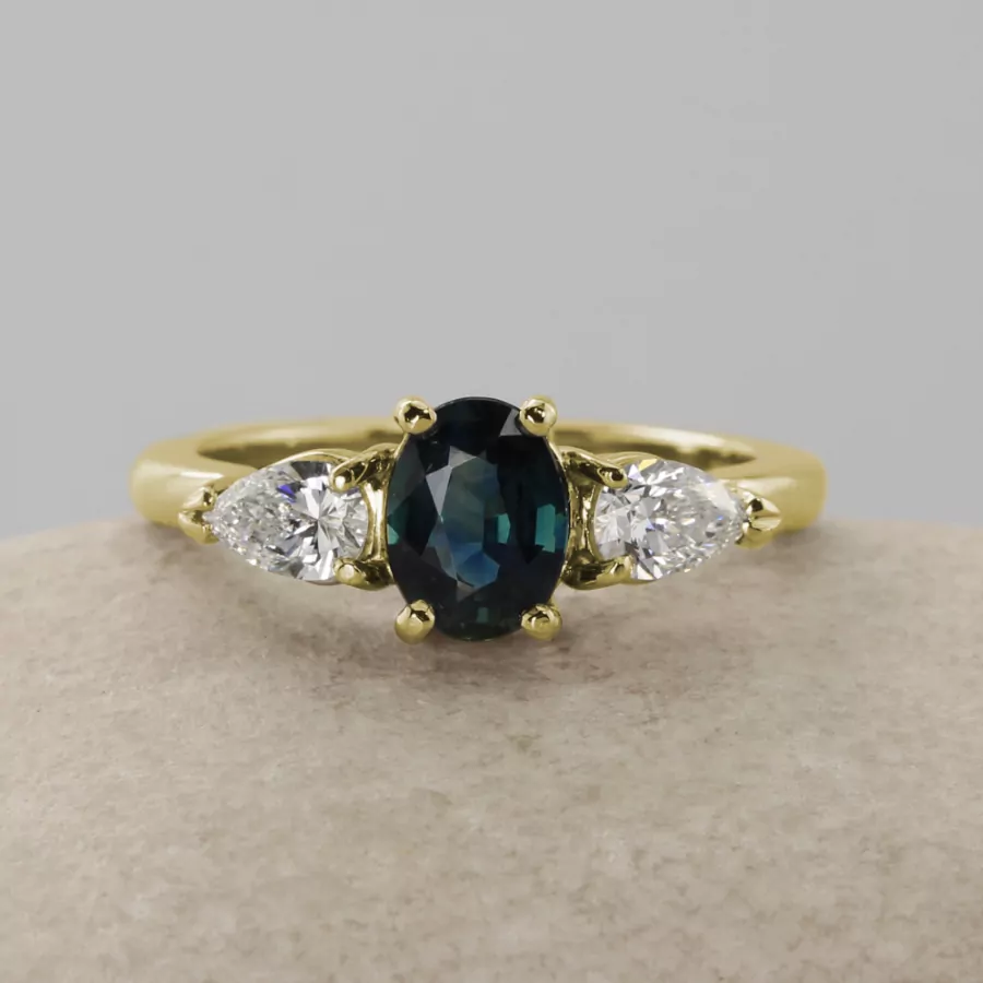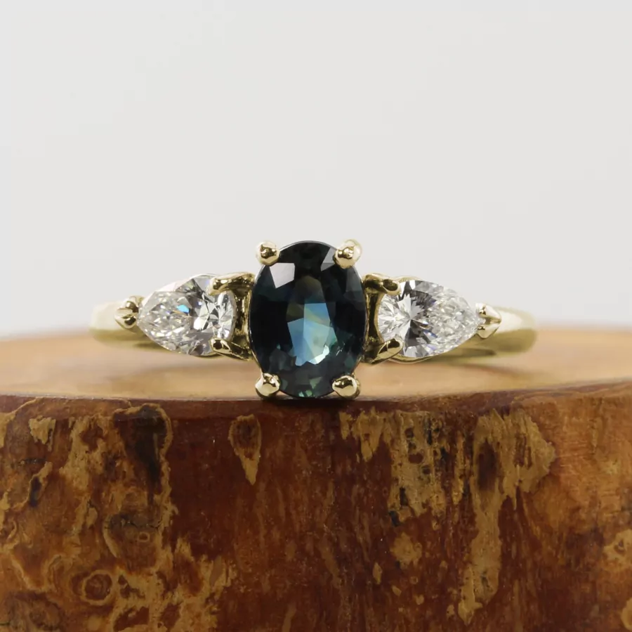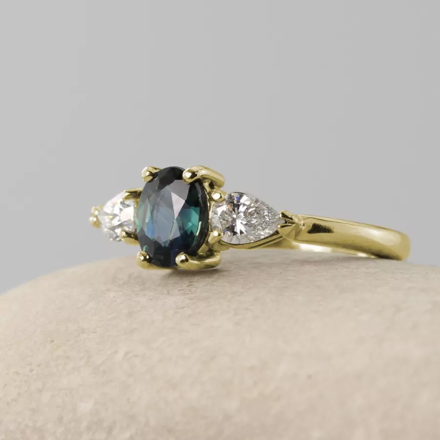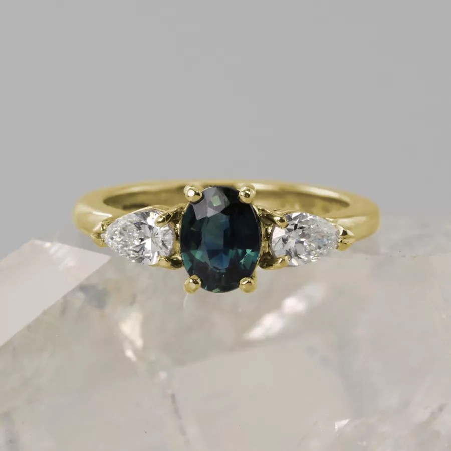 Centre Stone: 1.0ct Oval Teal Sapphire (Recycled)