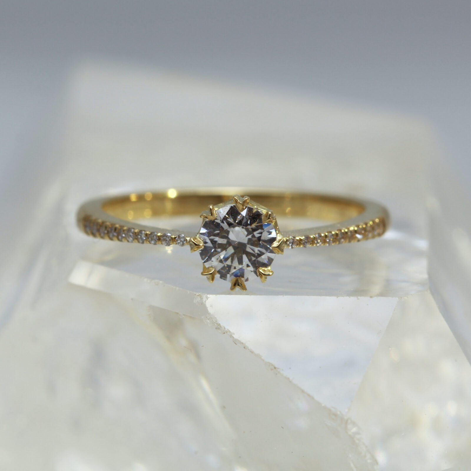 - Stone Shape: One centre round stone with a pavé shoulders