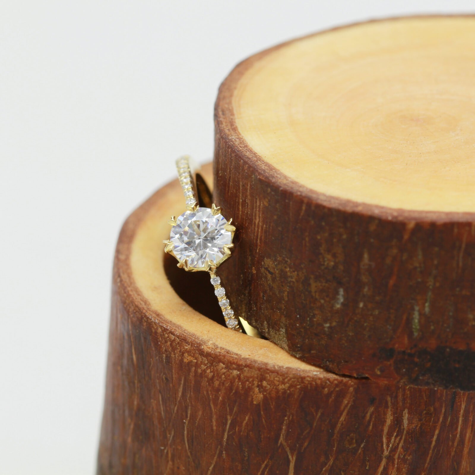 - Stone: choose from Moissanite, Lab Grown Diamonds or Recycled Diamonds (various sizes available)