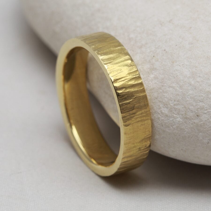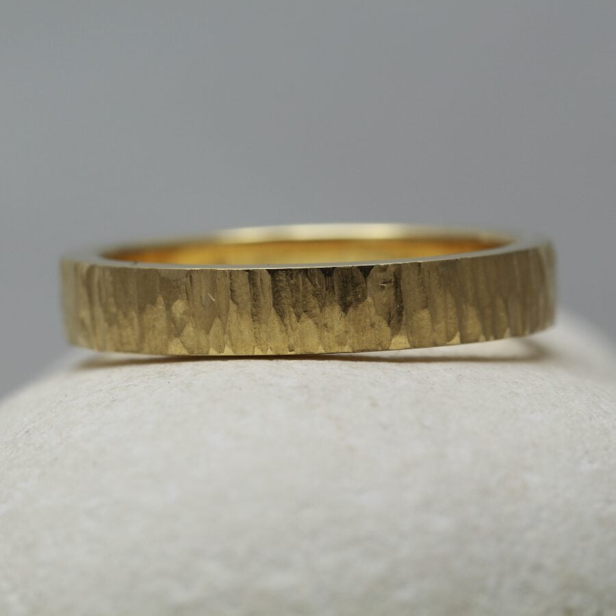 We don’t cast our rings, But for a pair of wedding rings we can do even better than casting them from the same mould. Every ring we make is individually handcrafted using traditional techniques, from making our own alloys, to drawing our own wire. If you buy a pair of rings in the same metal, we always make both your rings from the same melt, meaning they are chemically inseparable. If you buy a pair of rings but in different metals, we can usually incorporate a bead of each metal in the underside of each of the others’ rings, so your rings can still be connected at the atomic scale.