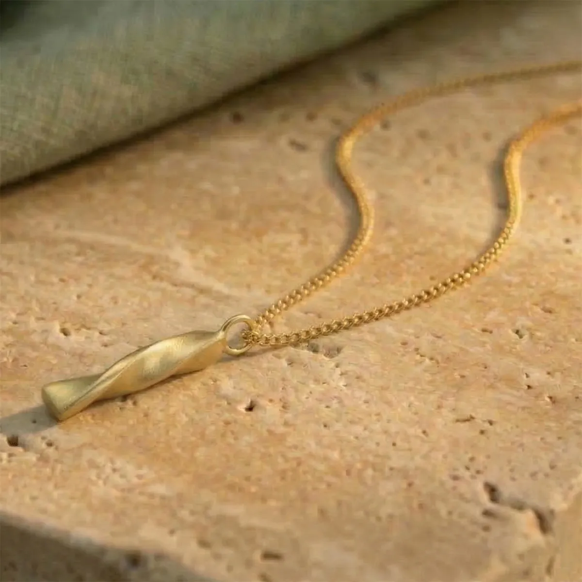 An 18ct yellow gold twist bar necklace with a polished and brushed finish. Handmade from ethical recycled gold and enhanced using natural river gold, gifted to you by us. Choose your river gold location to make your necklace extra special. Comes with 16″, 18″ or 20″ curb chain. If you don’t require a chain please let us know and we will provide a discount code to remove the cost.
