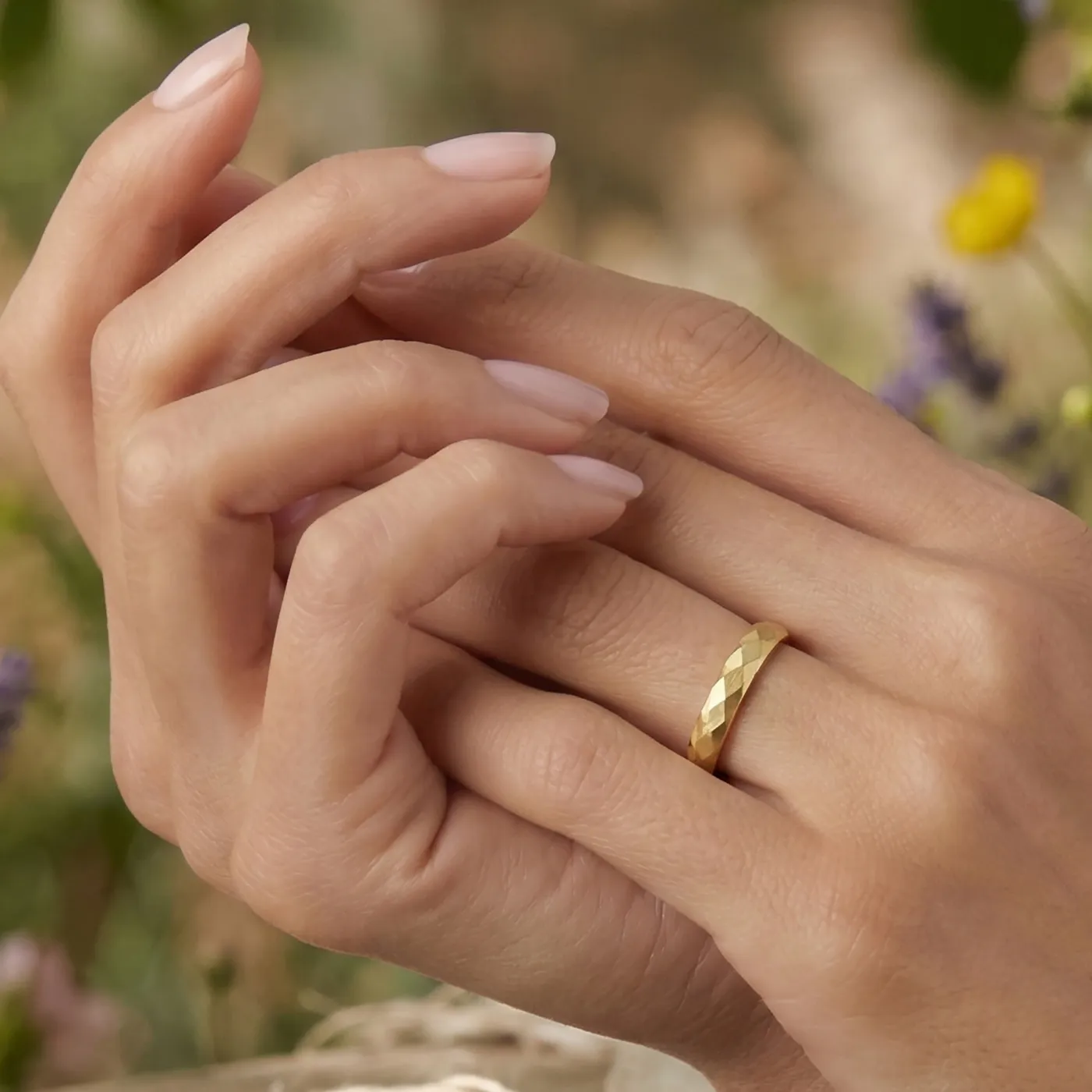 The Dever: Handmade 9ct White Gold Wedding Ring with Faceted finish
