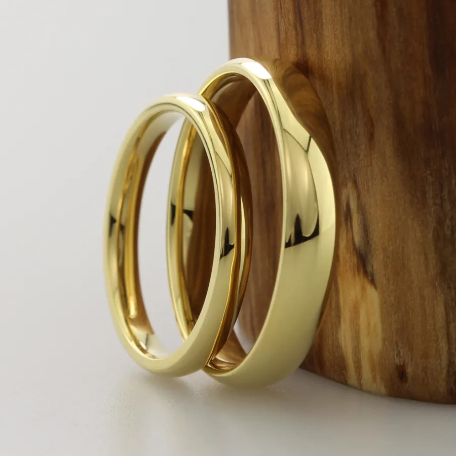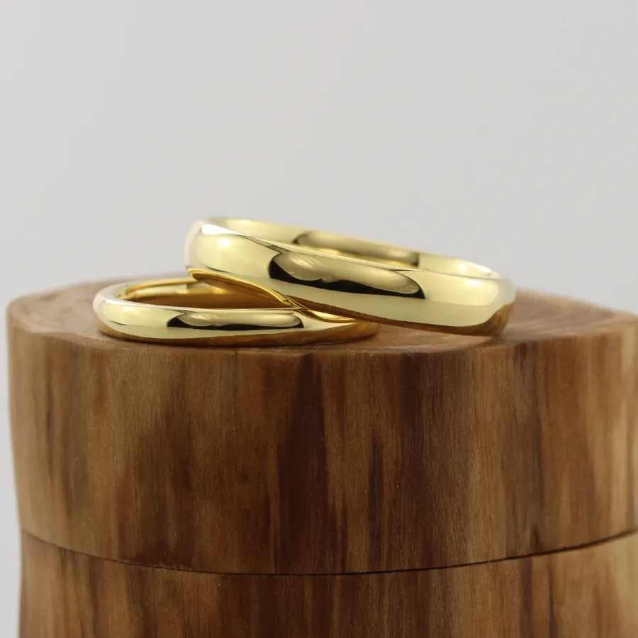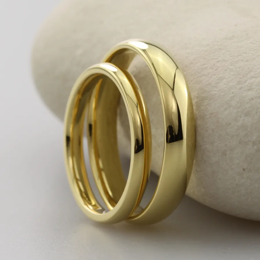 To maintain the rings’ polished appearance, clean gently with a soft cloth and avoid contact with abrasive cleaners or harsh chemicals.