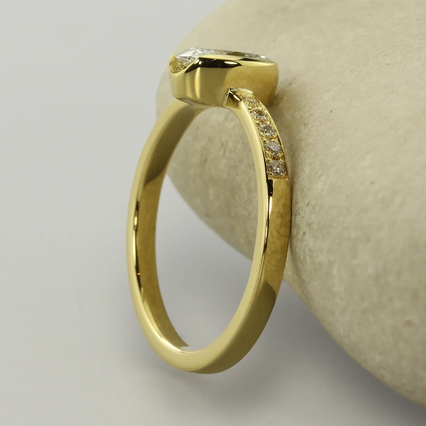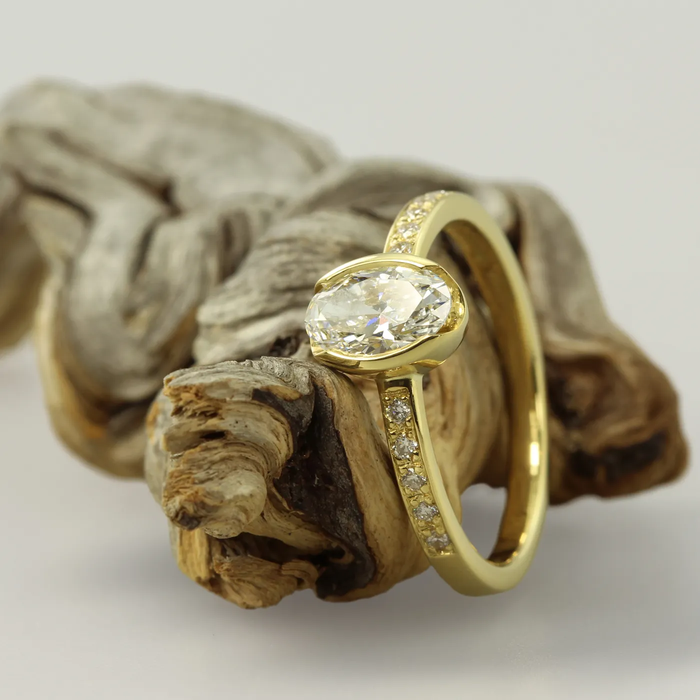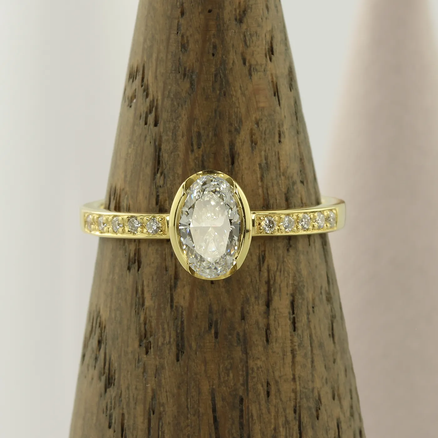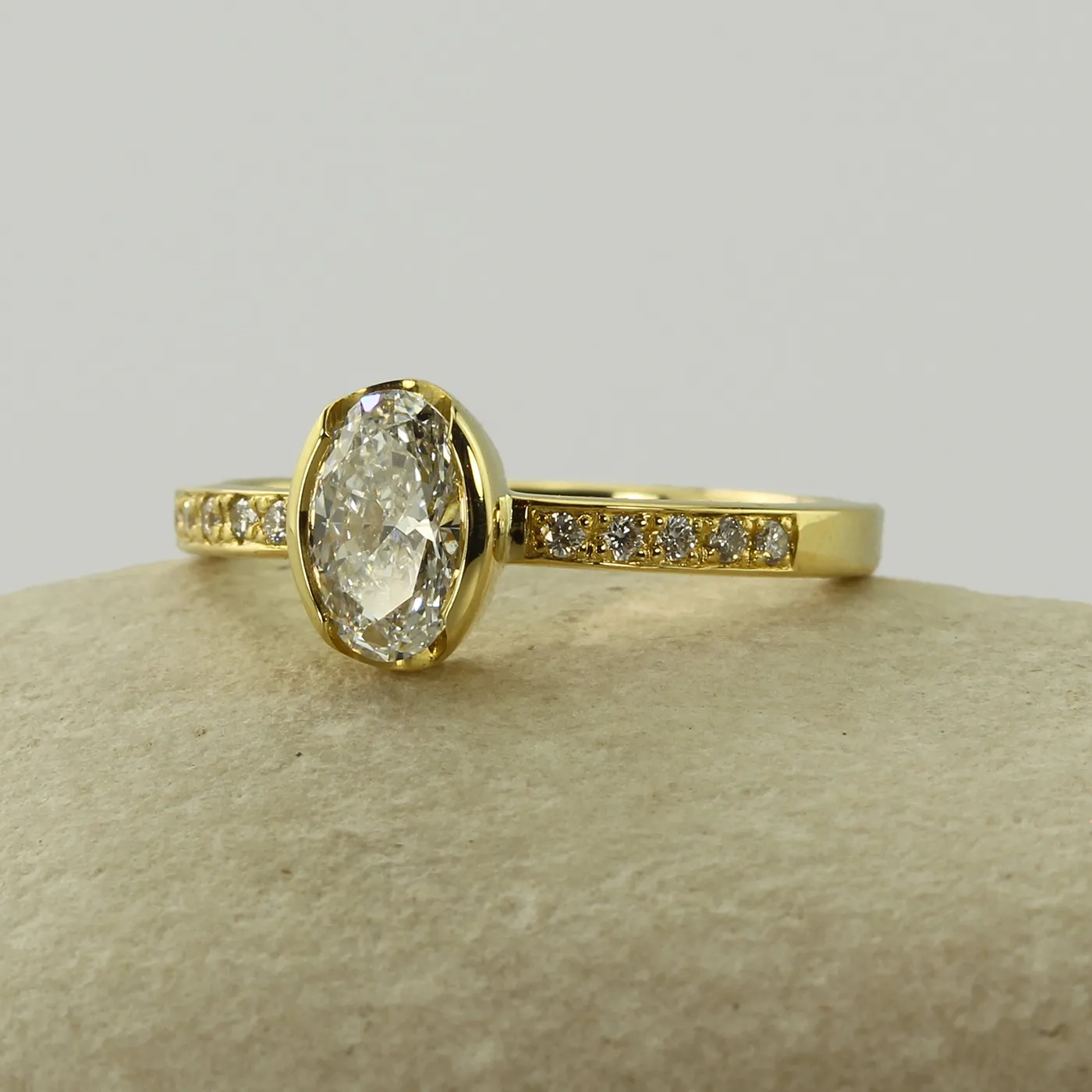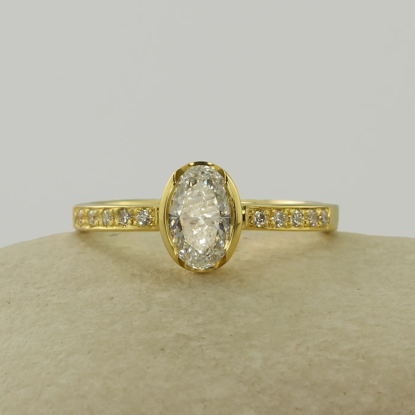 - Stone Shape: One centre Oval stone with pavé shoulders