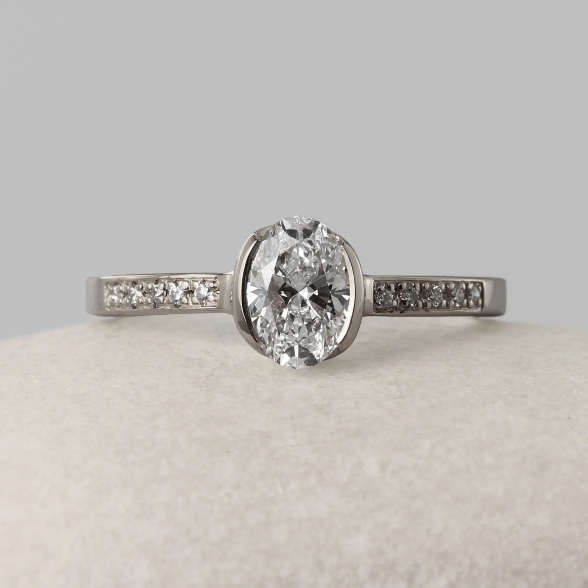 Diamond Shape: One centre 1.0ct Oval with pavé shoulders