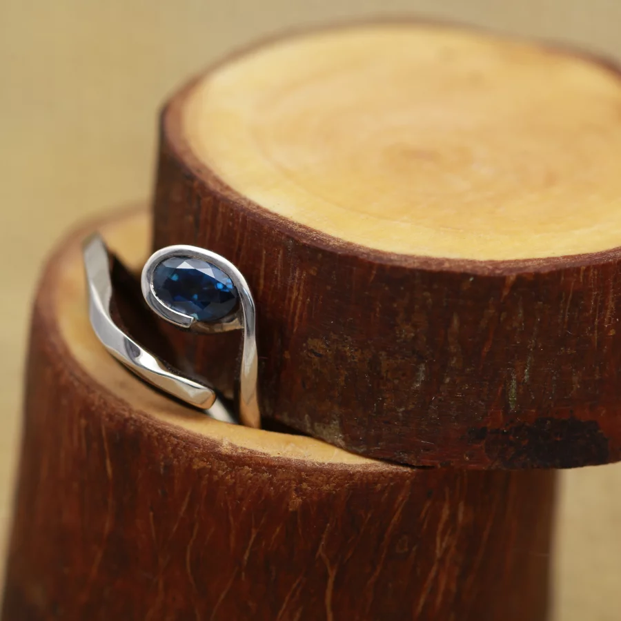 - Stone: choose from moissanite, lab grown diamond, recycled diamond or blue sapphire