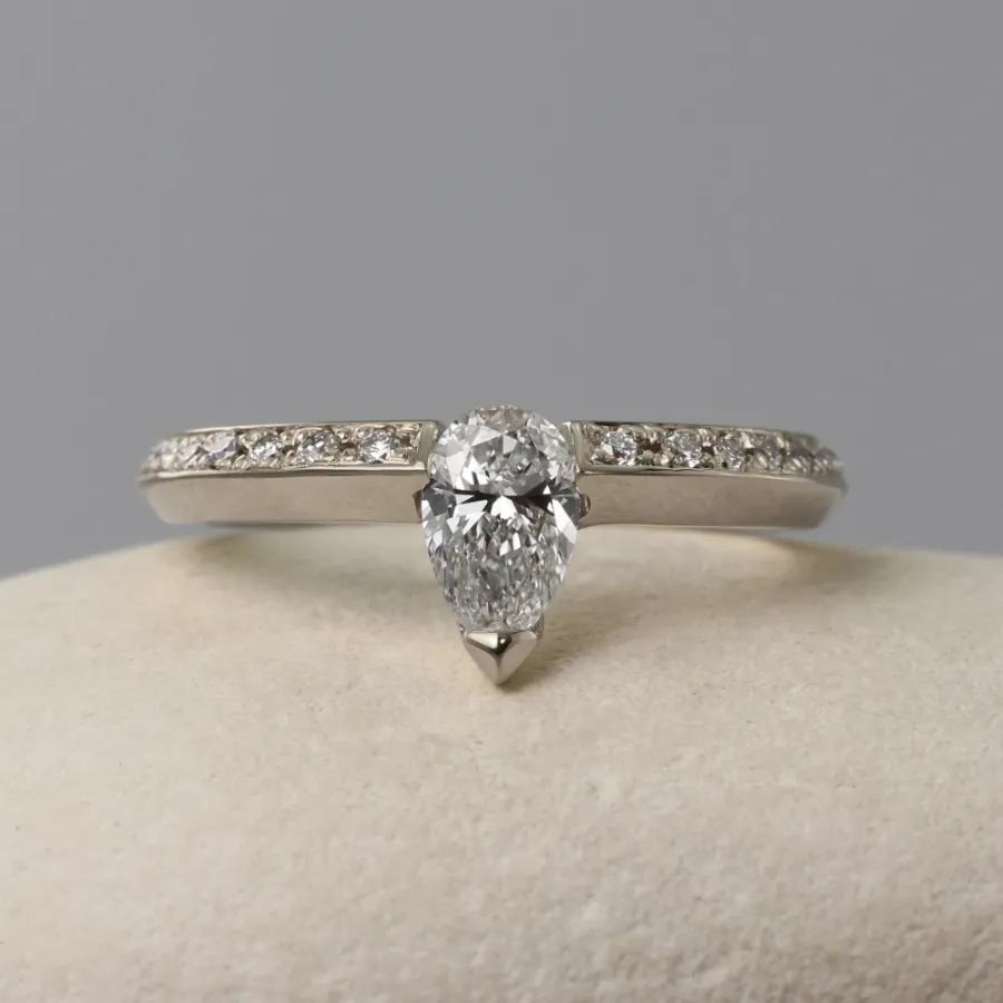 Stone Shape: One centre Pear cut stone with a pavé shoulders