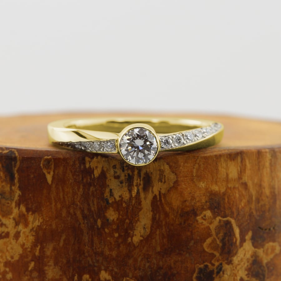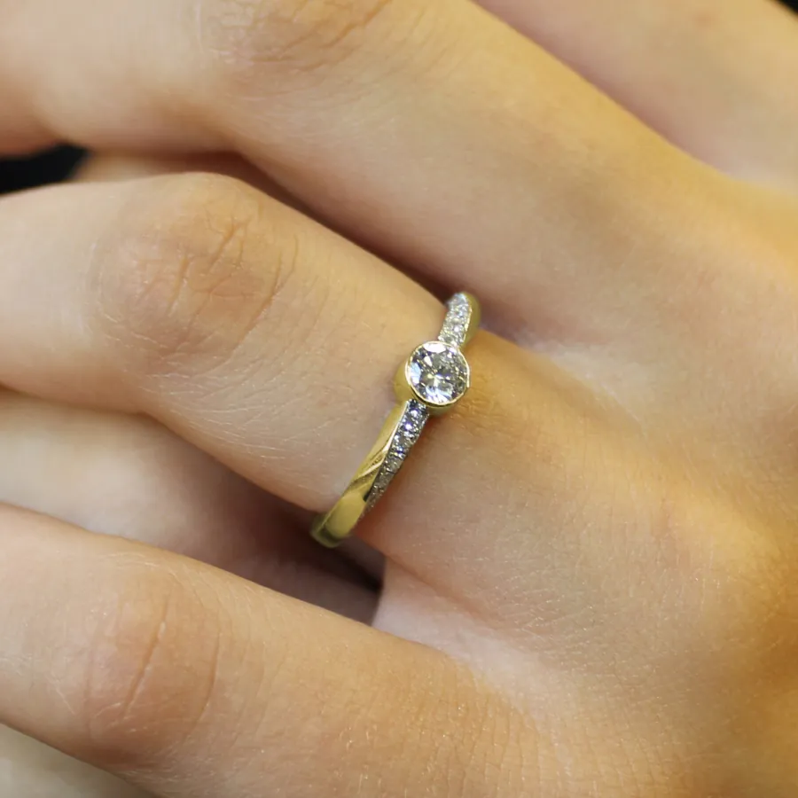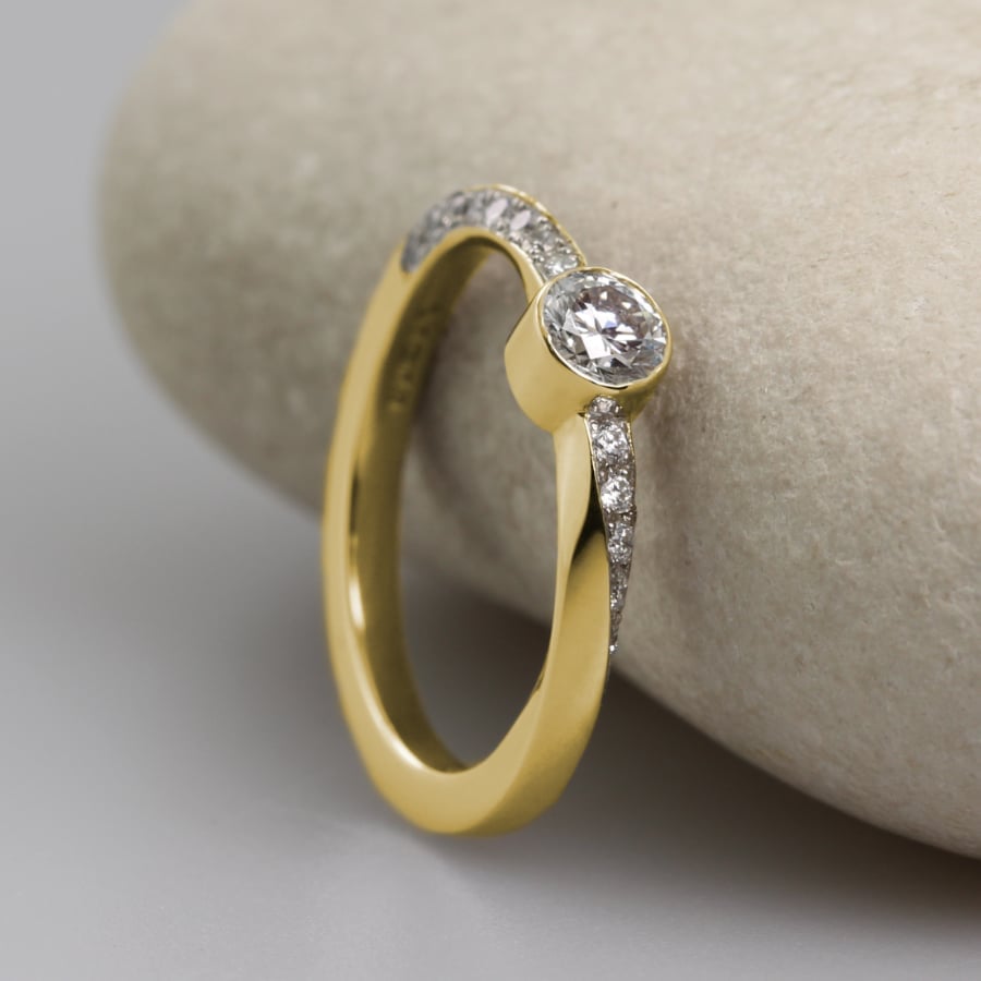 - Stone Shape: One centre round stone with a pavé shoulders