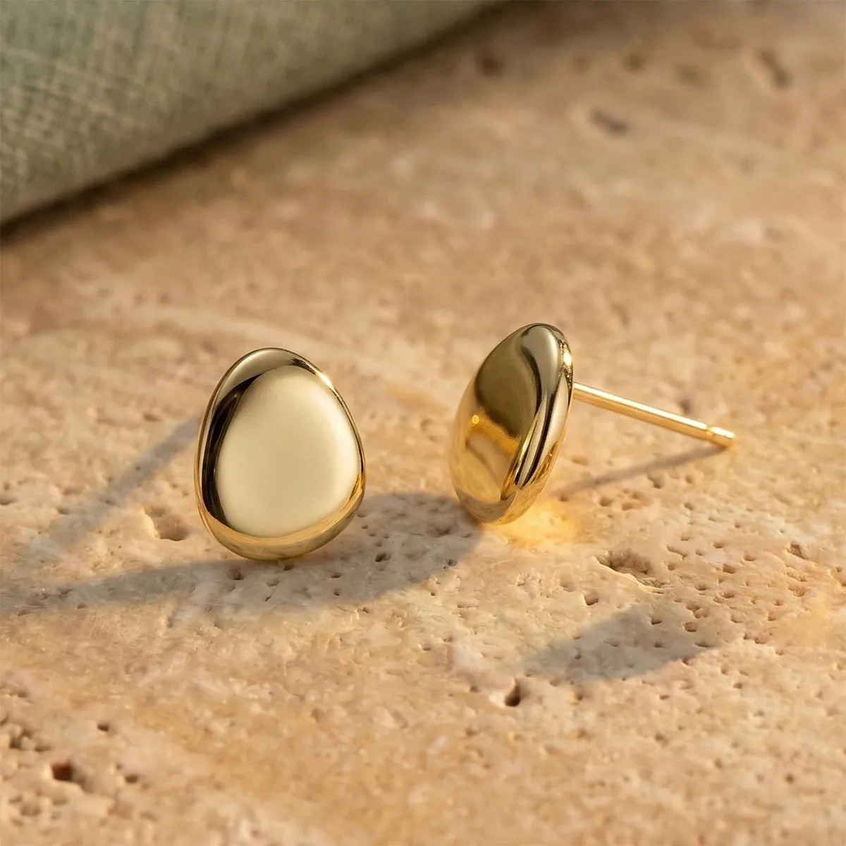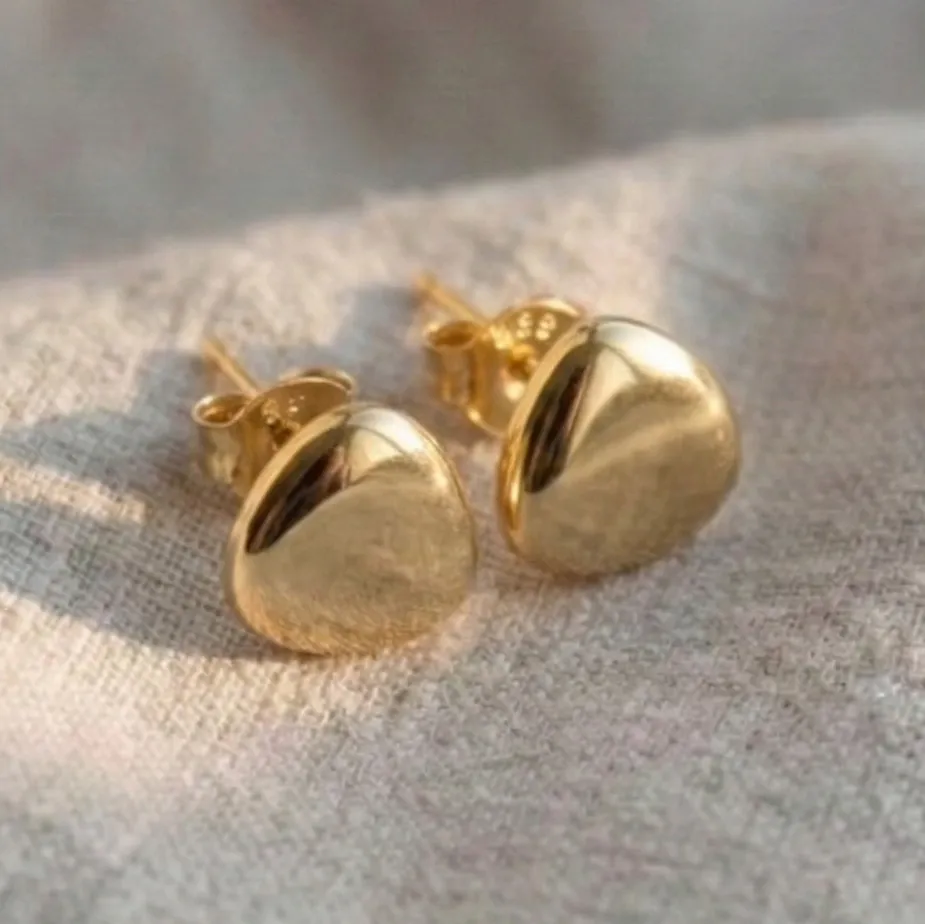 18ct yellow gold stud earrings with a polished finish. Handmade from ethical recycled gold and enhanced using natural river gold, gifted to you by us. Choose your river gold location to make your earrings extra special.