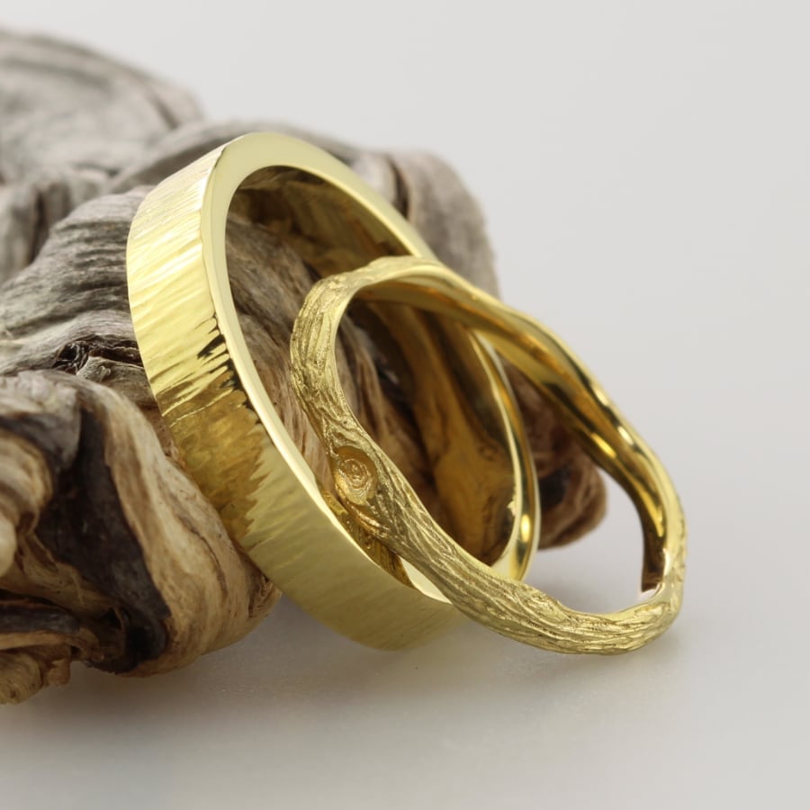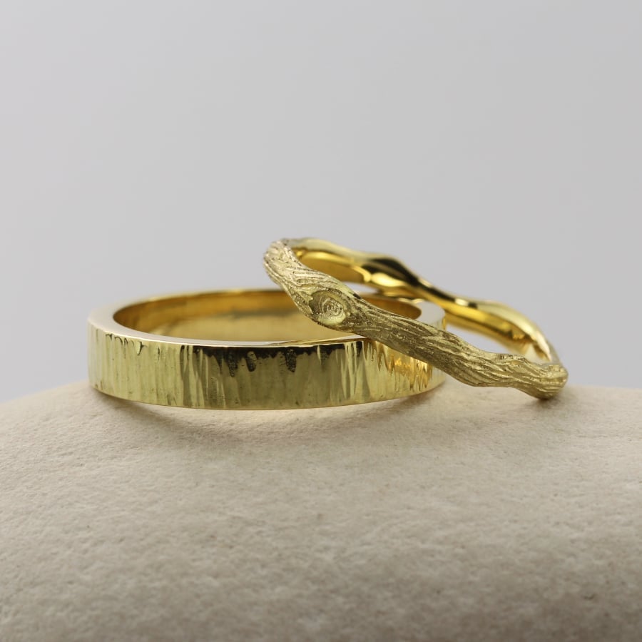 The Twig and Bark: Handmade 18ct Yellow Gold Wedding Ring Set