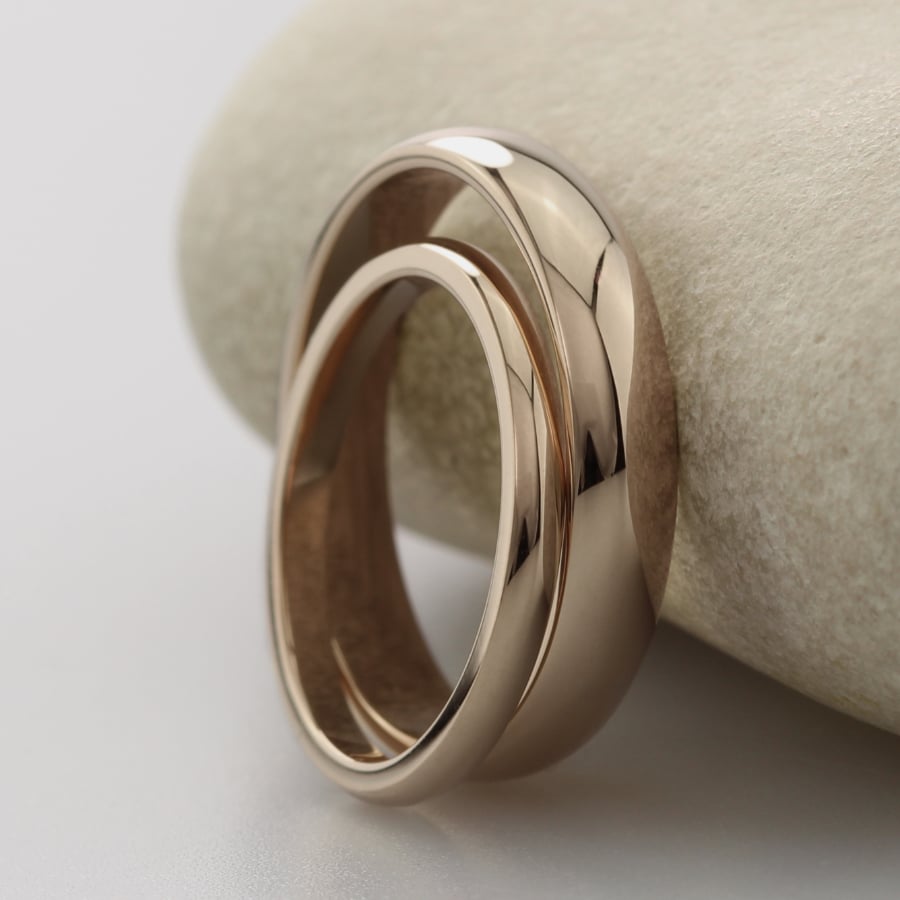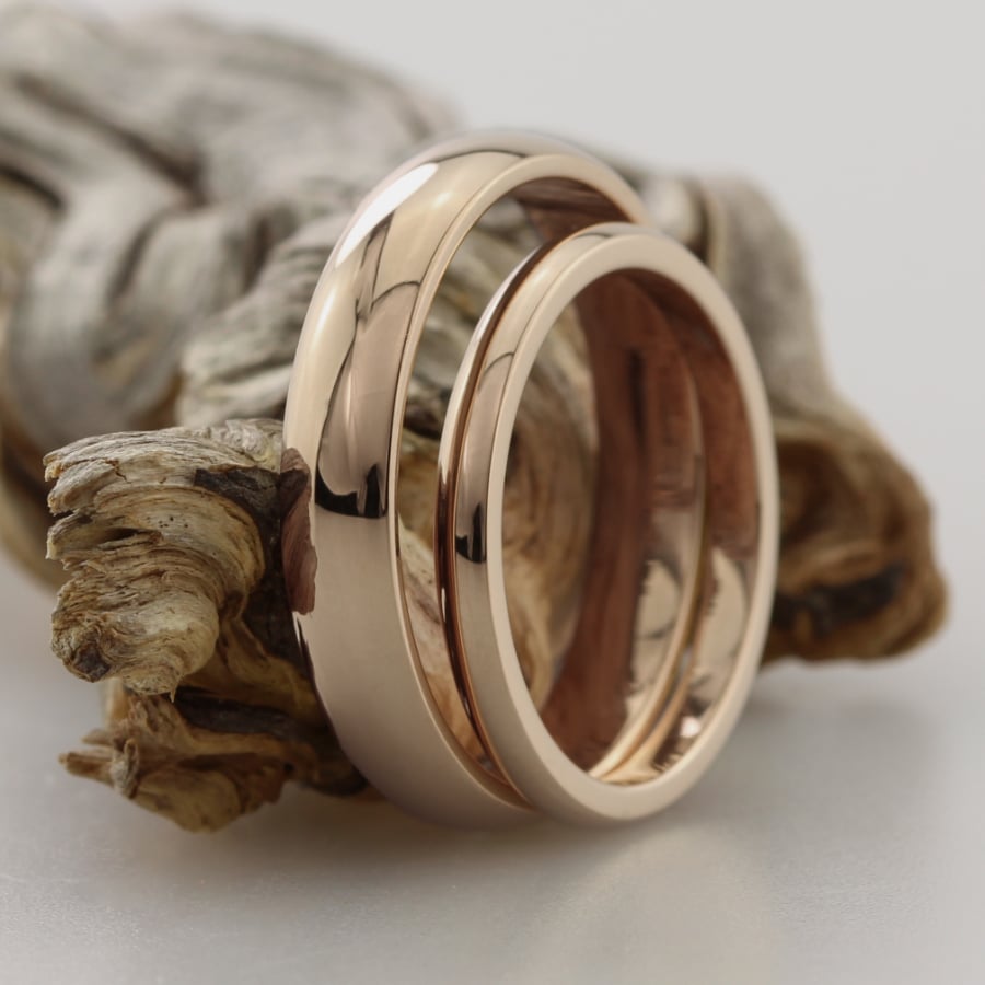 We don’t cast our rings, But for a pair of wedding rings we can do even better than casting them from the same mould. Every ring we make is individually handcrafted using traditional techniques, from making our own alloys, to drawing our own wire. If you buy a pair of rings in the same metal, we always make both your rings from the same melt, meaning they are chemically inseparable. If you buy a pair of rings but in different metals, we can usually incorporate a bead of each metal in the underside of each of the others’ rings, so your rings can still be connected at the atomic scale.