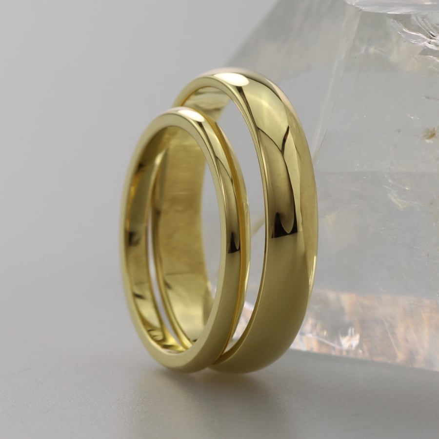 We don’t cast our rings, But for a pair of wedding rings we can do even better than casting them from the same mould. Every ring we make is individually handcrafted using traditional techniques, from making our own alloys, to drawing our own wire. If you buy a pair of rings in the same metal, we always make both your rings from the same melt, meaning they are chemically inseparable. If you buy a pair of rings but in different metals, we can usually incorporate a bead of each metal in the underside of each of the others’ rings, so your rings can still be connected at the atomic scale.