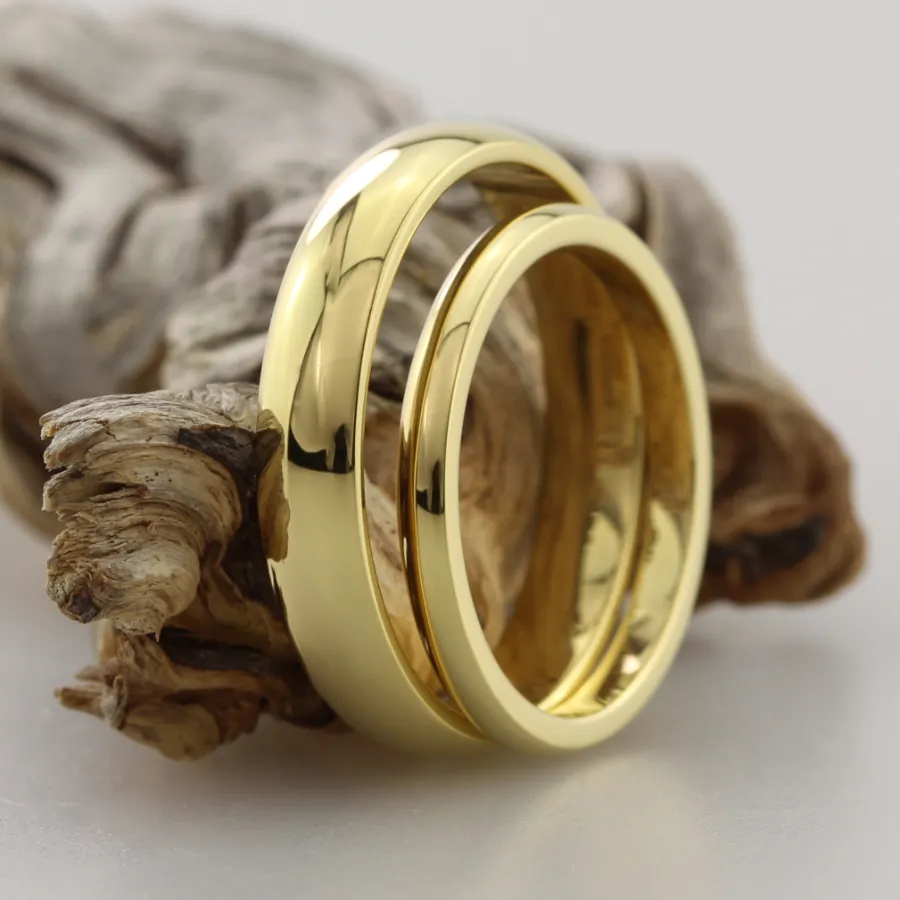 To maintain the rings’ polished appearance, clean gently with a soft cloth and avoid exposure to abrasive cleaners and harsh chemicals. You may wish to have your rings professionally polished from time to time to maintain their mirror-like shine.