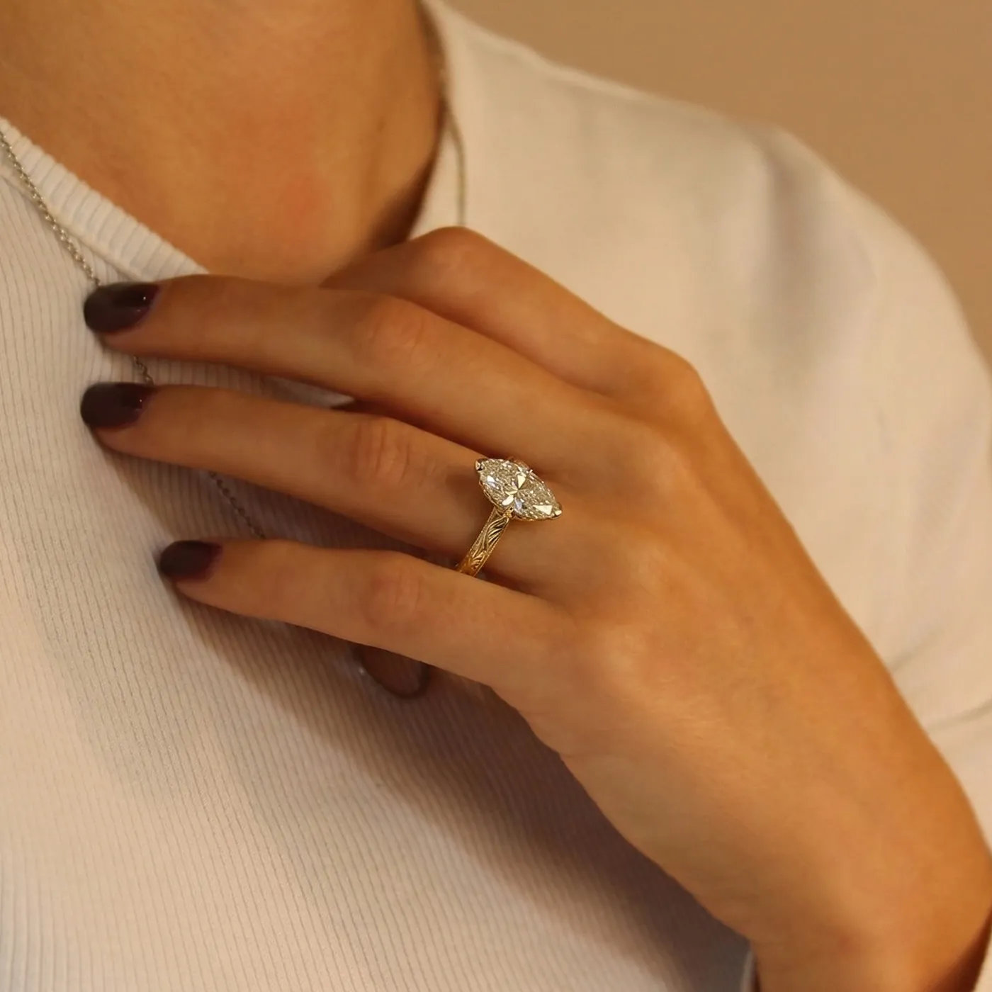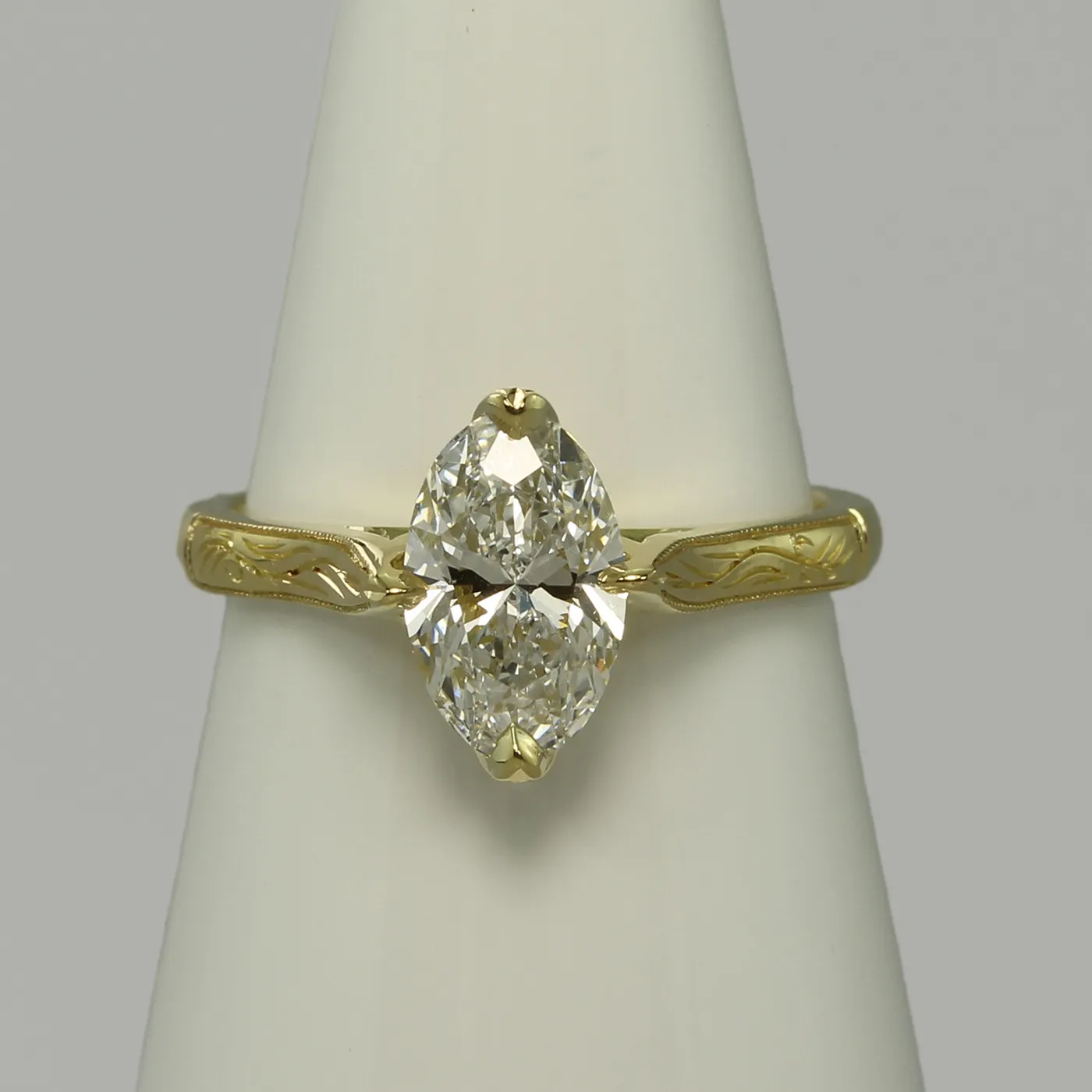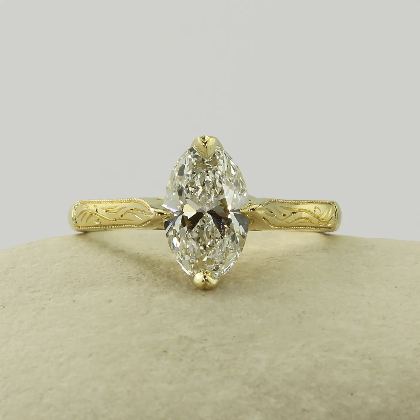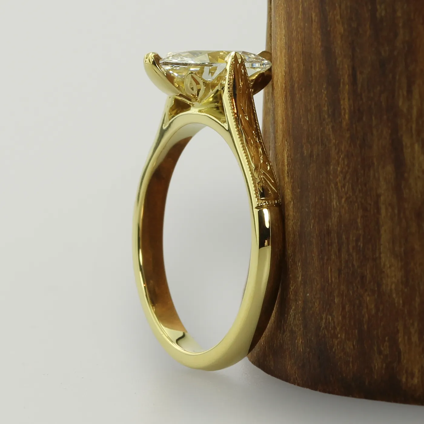 - Stone: choose from recycled or lab grown diamond or Moissanite (various sizes available – images show 1.50ct lab grown diamond)