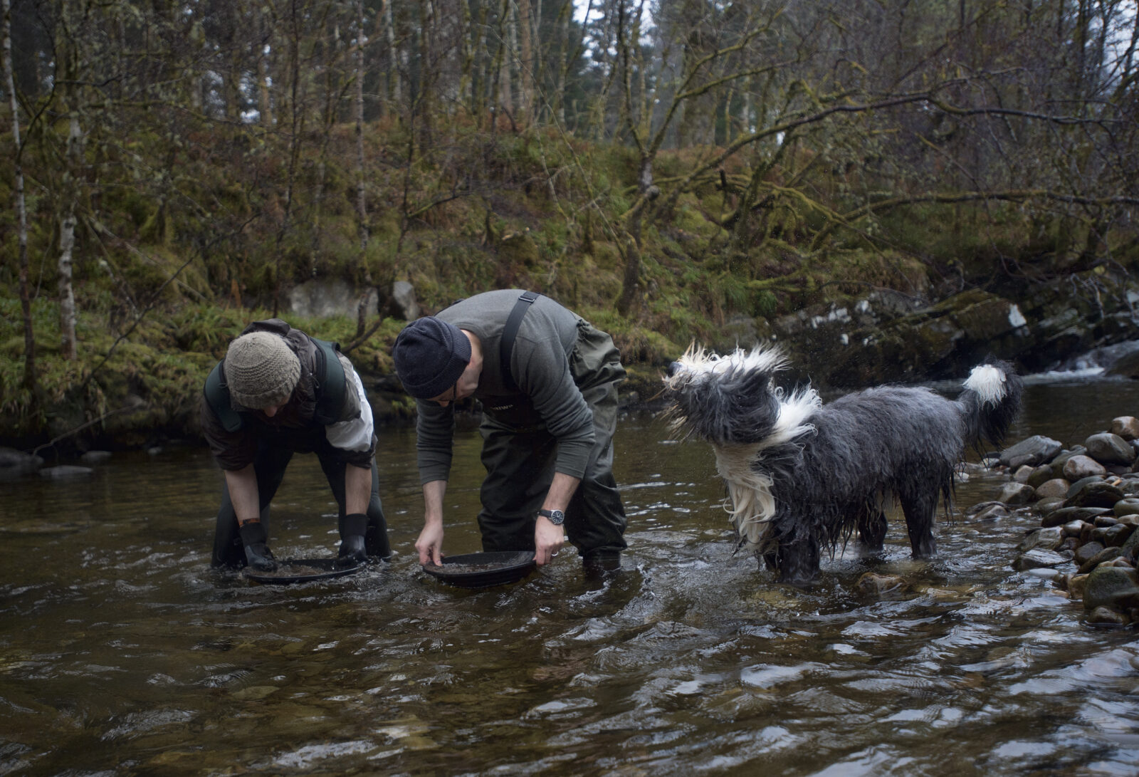 A wedding day is a day full of memories and whilst the rings are of course a part of that, working with Mark, panning on a cold dreich, snowy day in the Highlands, earning a little of our rings, is an extra memory that will be with us for a long time. Something you can’t put a price on. The actual rings were everything we had hoped for, much admired and of course the story of this has charmed so many of my new wife’s friends and family. Thank you, Mark, for so much more than just rings of gold. If you need a wedding ring, we have not a moment’s hesitation in recommending him…and his dog!